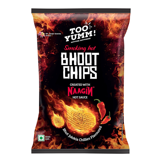 Turn up the heat with Too Yumm Smoking Hot Bhoot Chips, flavored with the fiery Bhut Jolokia Chillies and Naagin Hot Sauce. These crunchy potato chips deliver an intense spicy kick that’s perfect for thrill-seekers and spice lovers. A bold and flavorful snack, these chips are great for parties, movie nights, or whenever you’re in the mood for something daringly hot. Packed with irresistible crunch and explosive flavor, Too Yumm Bhoot Chips are a snack adventure you don’t want to miss!